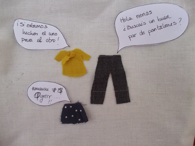 La desbocá (así la he bautizado) ha salido a la calle un par de veces y está aprobada con suficiente raspado. El que esté colgada en mi armario y no en mi caja de telas, se debe a que mi marido cuando me la vio puesta dijo "uy, que falda más chula! ¿te la has hecho tú?" Increíble que después de dos meses que la falda ha estado colgada de todos los pomos de todas las puertas que hay en esta casa, mi querido esposo no la haya visto antes. También confirma mis sospechas sobre quien es ese misterioso seguidor de mi blog llamado Alberto Gómez, el seguidor menos activo de la blogsfera...